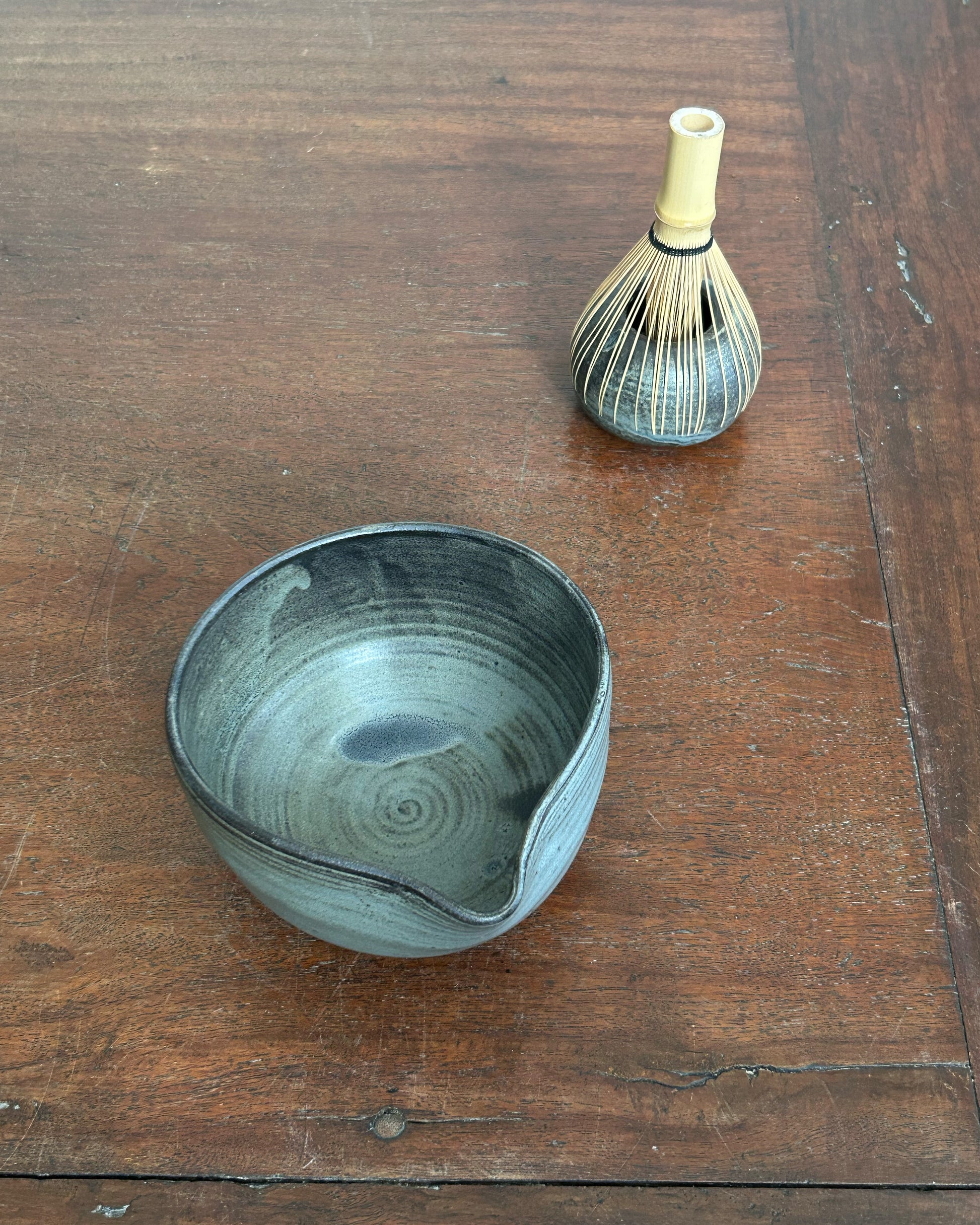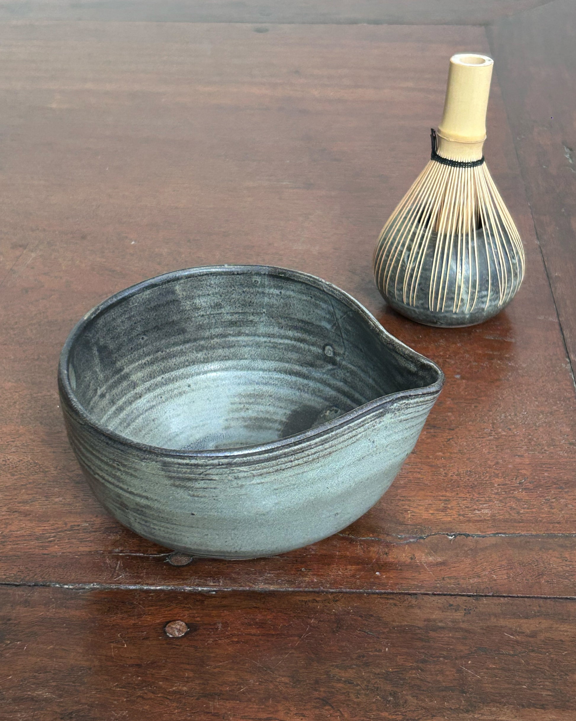 This katakuchi is shaped by hand using the throwing technique, with a softly asymmetrical form that gently reflects its handmade origin. The hand-painted glaze introduces quiet variations in tone and texture, echoing the rhythm of its making.