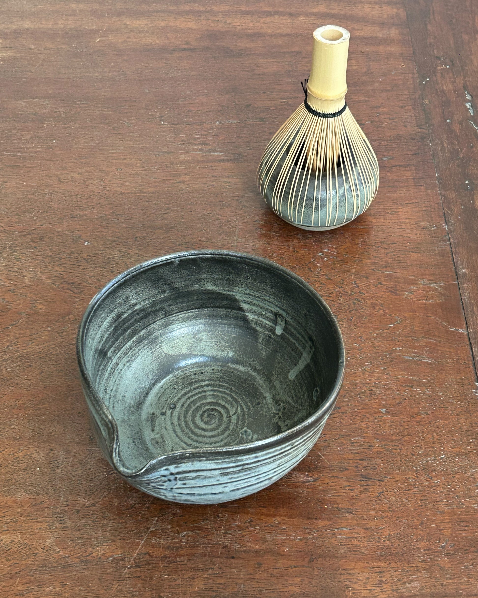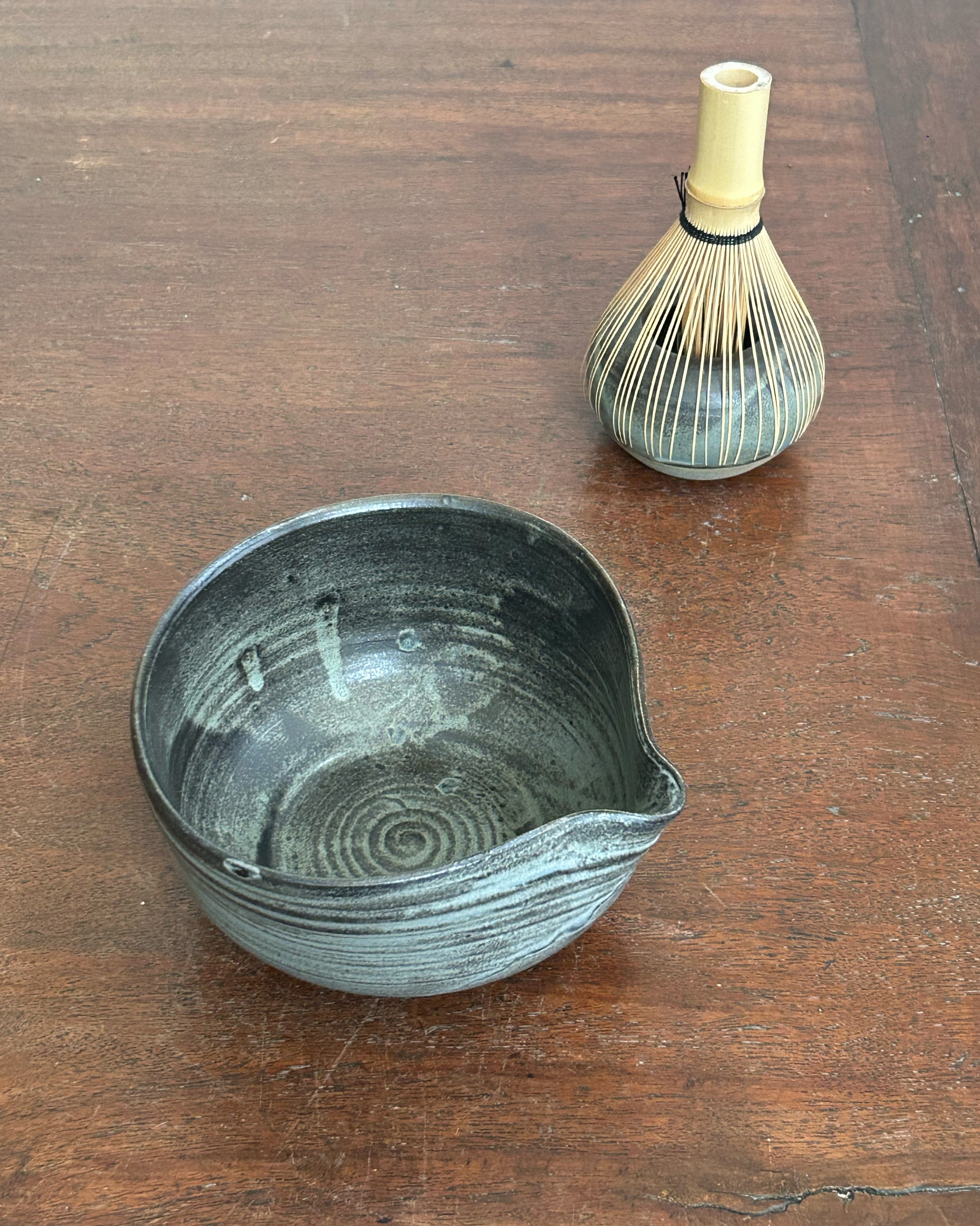 This katakuchi is shaped by hand using the throwing technique, with a softly asymmetrical form that gently reflects its handmade origin. The hand-painted glaze introduces quiet variations in tone and texture, echoing the rhythm of its making.