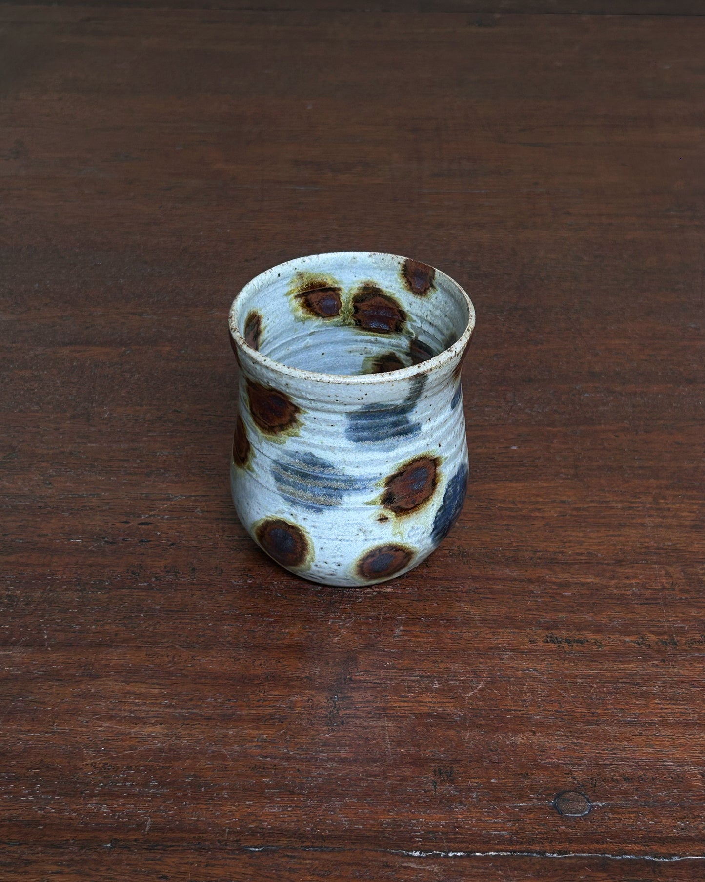 This cup is shaped by hand using the throwing technique, with a asymmetrical form that gently reflects its handmade origin. The hand-painted glaze introduces quiet variations in tone and texture, echoing the rhythm of its making.