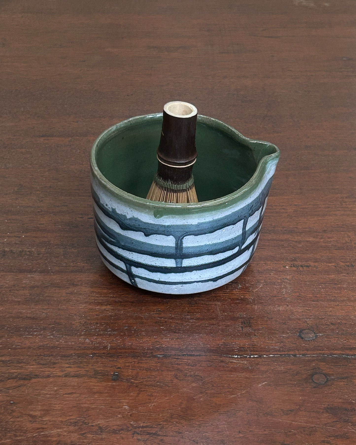 This katakuchi is shaped by hand using the throwing technique, with a softly asymmetrical form that gently reflects its handmade origin. The hand-painted glaze introduces quiet variations in tone and texture, echoing the rhythm of its making.
