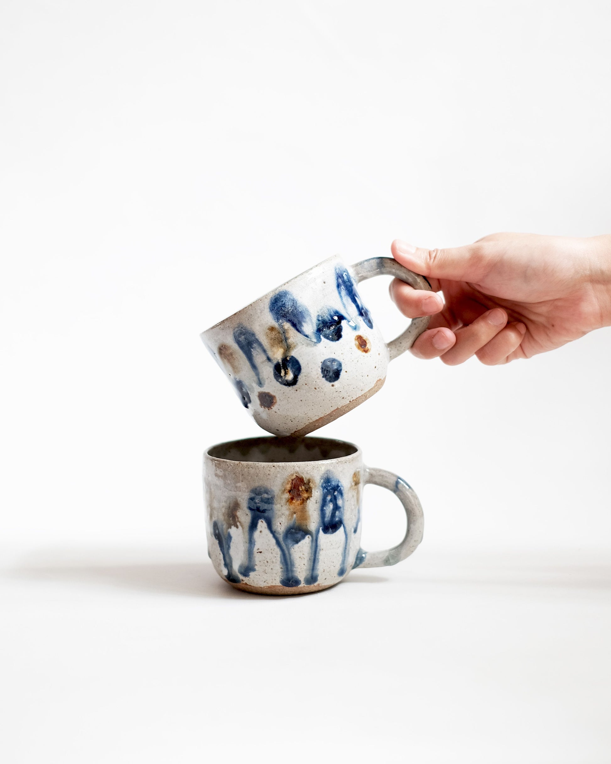 Each piece is unique, with the same colors and similarities with differences in applications of glaze and slight variations in size.